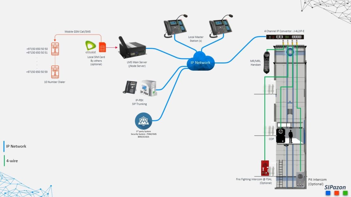 SIPazon EN81 is een complete communicatie- en IoT oplossing voor alle soorten projecten en toepassingen. Van een eenvoudige simplex lift tot de meest complexe en veeleisende omgevingen zoals luchthavens of metrostations. Het systeem is beschikbaar in zowel IP- als bekabelde varianten.